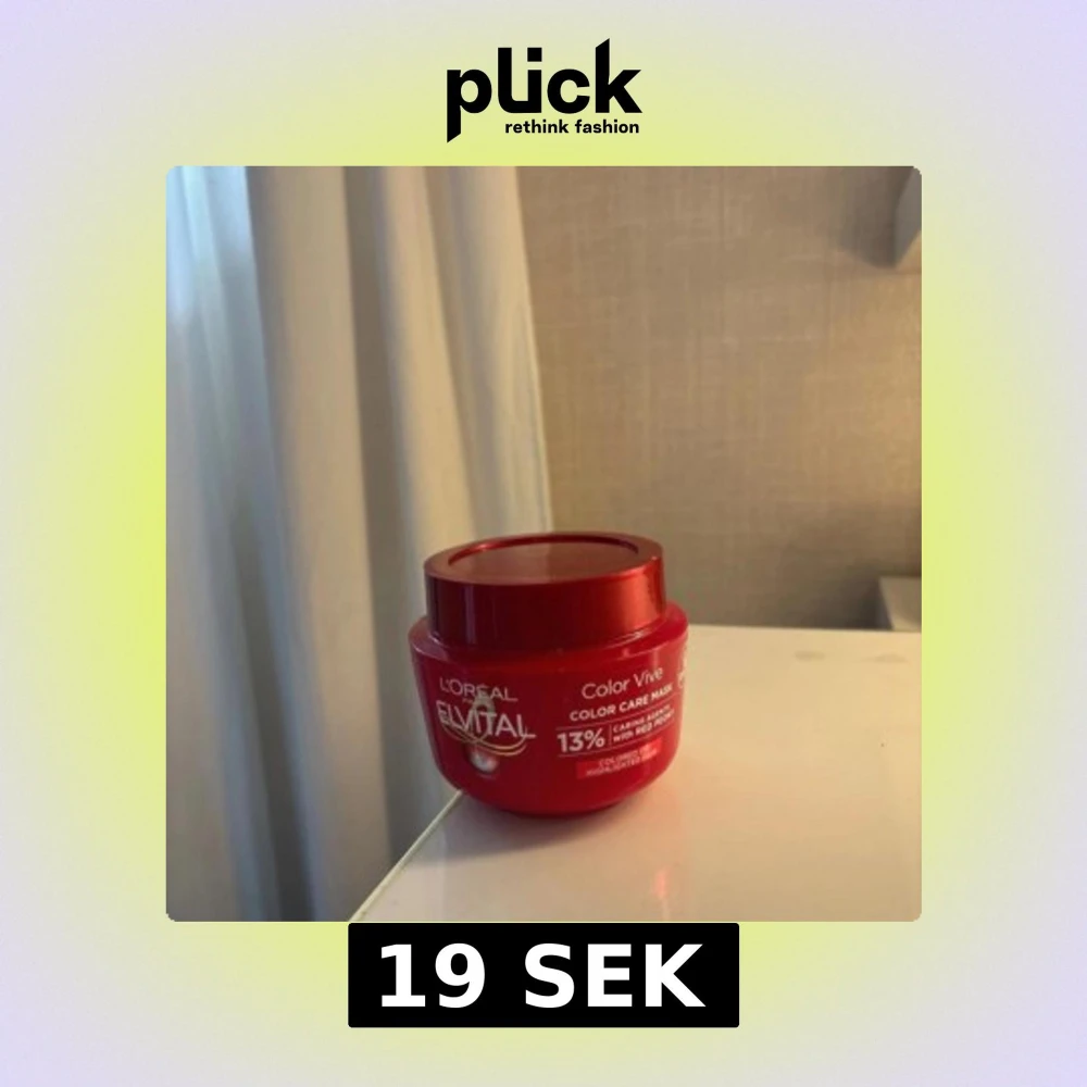 L'Oréal Elvital Color Vive Color Care Mask i röd plastburk. Inpackningen är ljusorange och passar färgat hår. Ger glans och vård med 13% caring agents. Perfekt för dig som vill boosta färgen och få mjukt hår. ( du ser på bild hur mycket som är kvar)