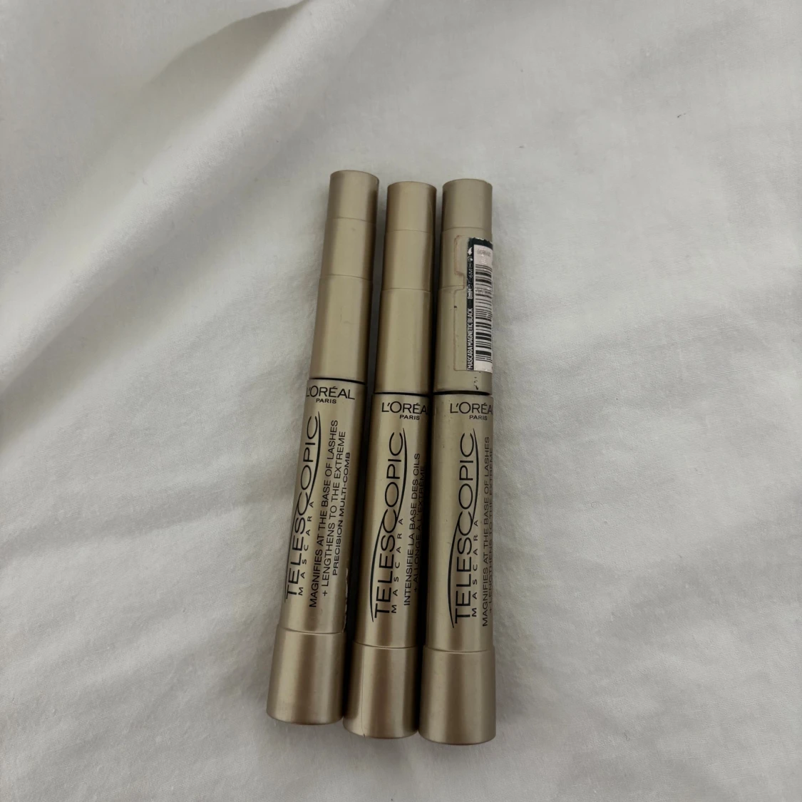 Tre stycken helt oöppnade L'Oréal Telescopic mascaror. Ger långa och separerade fransar med en smal och flexibel borste. Populär mascara från L'Oréal. GÅR ATT KÖPA STYCKPRIS!! En för 80 alla tre för 240 kr.