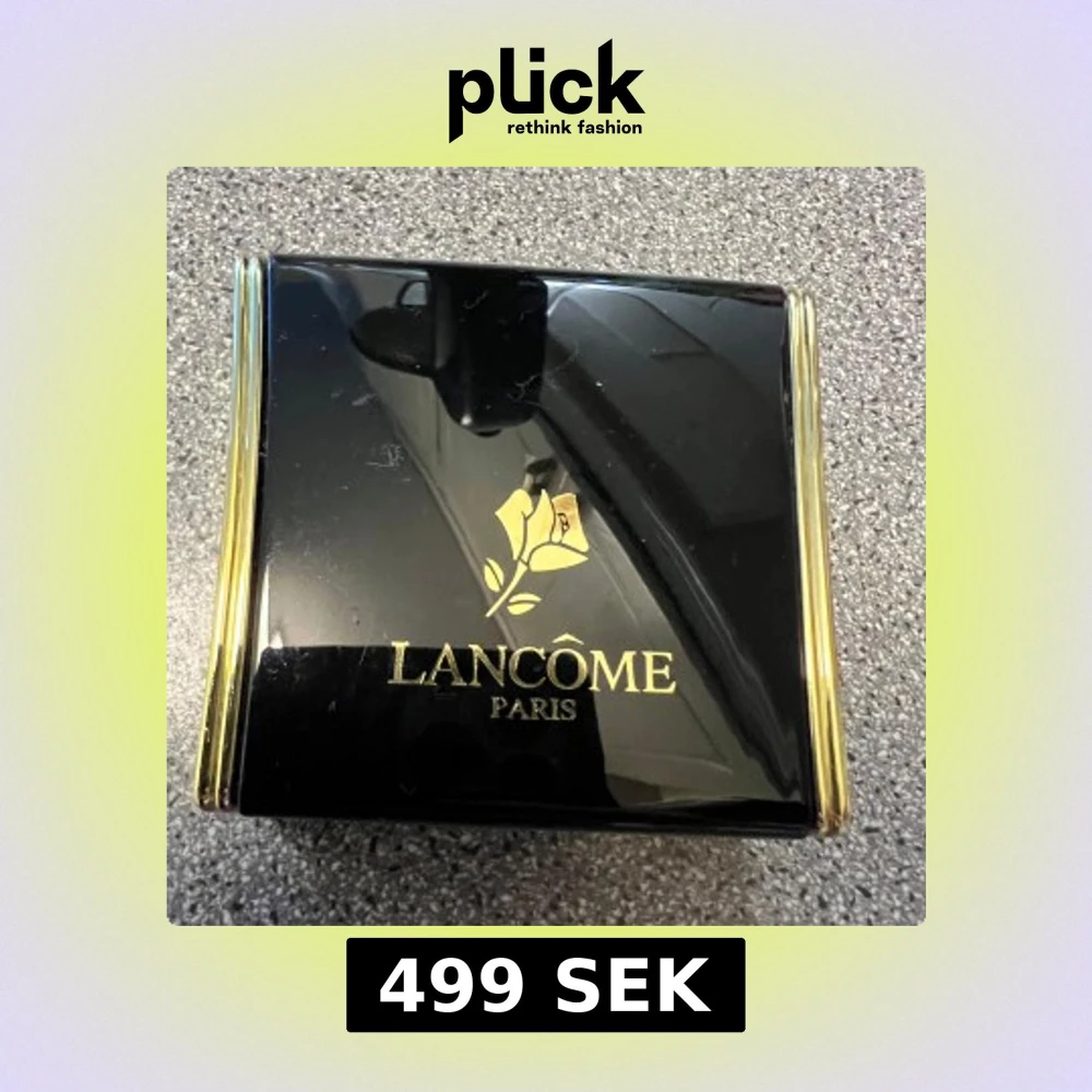 Säljer en Lancôme Maquicake UV Foundation i en elegant svart och guld förpackning. Inkluderar även en ögonskuggspalett med sex färger: blå, rosa, lila och röd. Perfekt för en glamorös look.