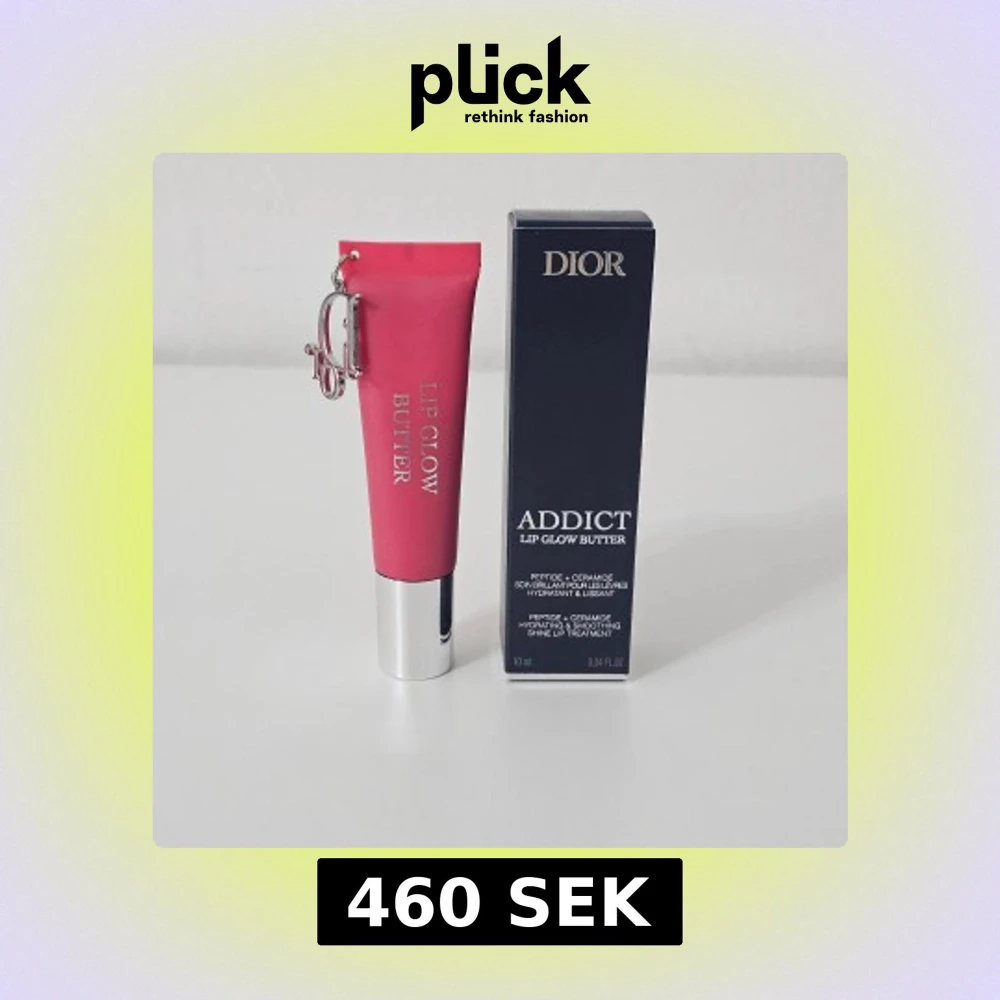 Säljer en Dior Addict Lip Glow Butter i färgen 105 Lychee. Tuben är rosa med silverfärgat lock och har en snygg Dior-charm. Köpt för 500 + 79 kr frakt