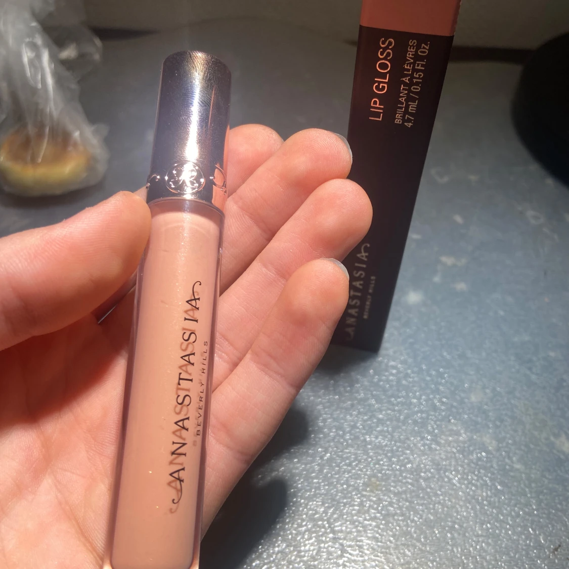 Snyggt läppglans från Anastasia i en ljus nude nyans. Förpackningen är elegant med en metallisk kork och märkeslogga. Perfekt för en glansig finish. Den är helt ny, helt otestad, kommer med förpackning såklart, har online kvitto såklart