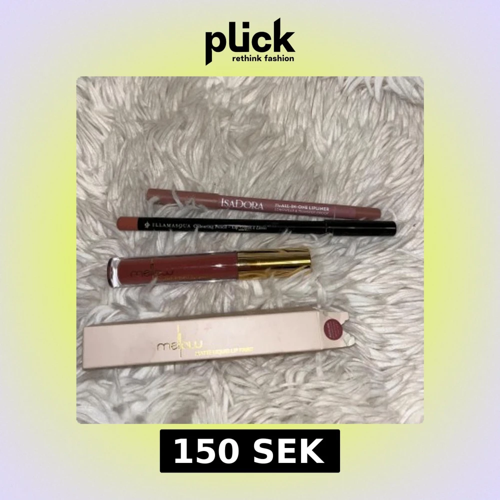 Mellow Matte Liquid Lip Paint i färgen Auckland, Isadora All-in-One Lipliner i färgen Bare beige, Illamasqua Colouring Pencil i färgen Raw. Pennorna är provade på hand men ner-vässade så endast ny produkt är framme. Lip Paint oanvänt se bild