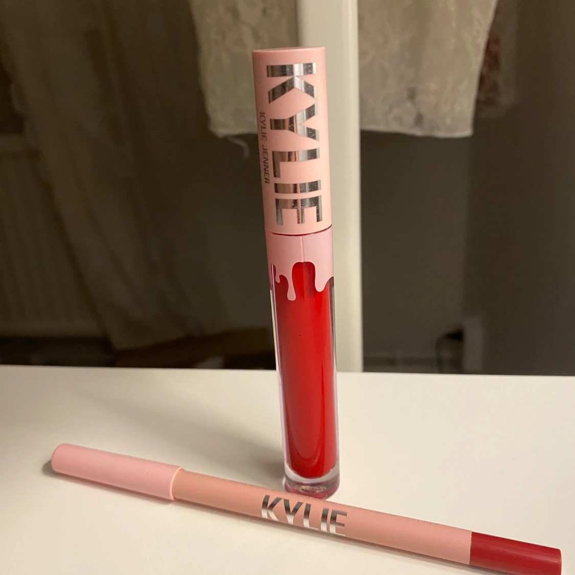 Super sött kit med rött läppstift +läppenna från Kylie cosmetics💄💋Produkterna har endast testat 1 gång och är i stort sett som ny:) Pris kan diskuteras pg av detta🙏