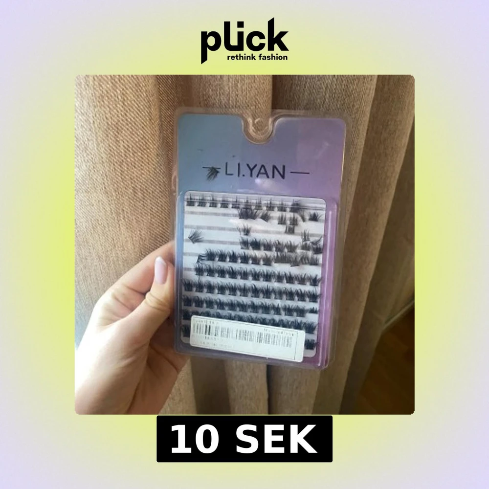 Ett paket med svarta individuella lösögonfransar från LI.YAN. Fransarna kommer i olika längder och tjocklekar, perfekta för att skapa en personlig look. De är förpackade i en plastask med lila bakgrund och passar både till att fylla ut eller bygga volym. Lite är använd men därav lågt pris.
