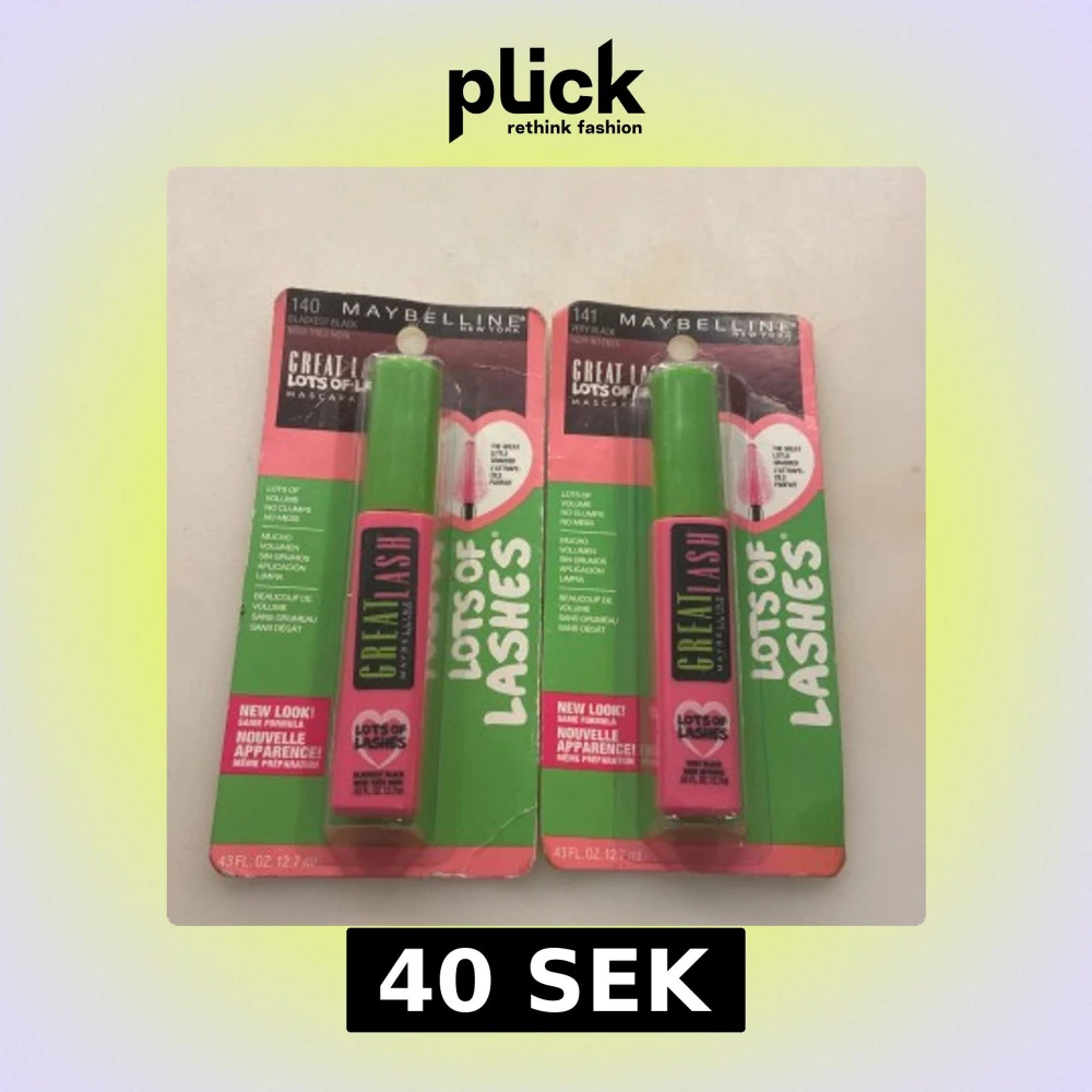 Maybelline Great Lash Lots of Lashes Mascara i färgen Blackest Black. Ikonisk rosa tub med grön kork och svart text. Ger mycket volym utan klumpar tack vare den unika 'Great Little Grabber'-borsten. Innehåller 12,7 ml. Perfekt för dramatiska fransar. Helt oanvända båda två kvar i förpackning vill gärna bli av med båda två men vill du bara ha en funkar de också