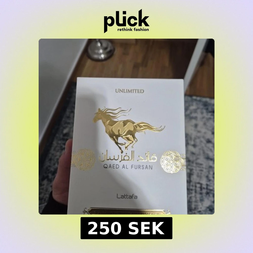 Elegant parfym från Lattafa, Qaed Al Fursan Unlimited, i en stilren vit flaska med gyllene detaljer och ett unikt mönster. Flaskan har en gyllene kork och en design som utstrålar lyx och elegans. Perfekt för den som söker en sofistikerad doftupplevelse. Helt ny men inte nöjd men doften jag är mer åt de mörkare hållet