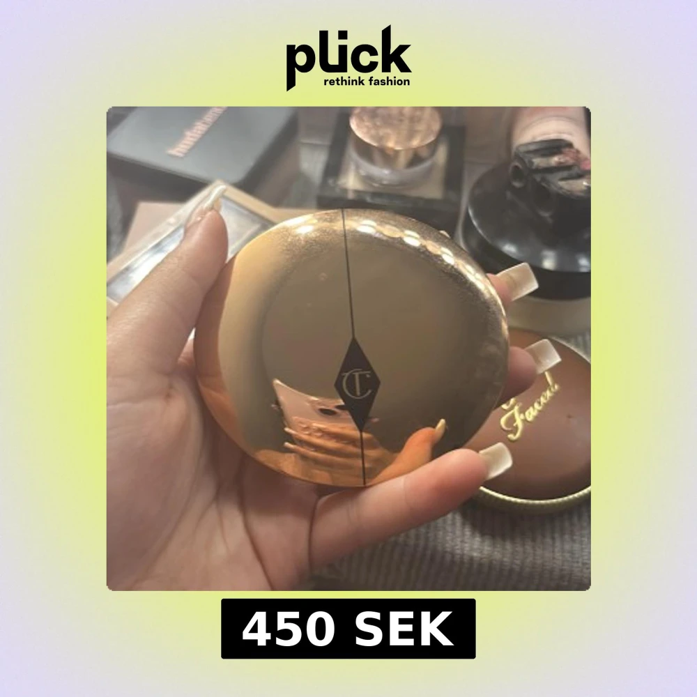 Säljer ett pressat puder från Charlotte Tilbury i en lyxig, rund guldig dosa med spegel. Pudret är ljust beige och perfekt för att matta ner huden och ge en jämn finish. Dosan är elegant och smidig att ha med i väskan. Har förpackningen har fått fel färg.