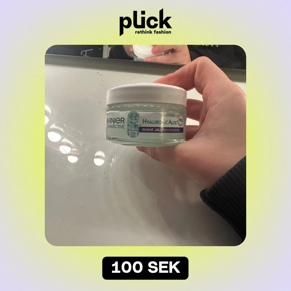En nattgel från Garnier SkinActive med hyaluronsyra och aloe vera. Den har en lätt, geléaktig konsistens och är designad för att återfukta huden under natten. Perfekt för en fräsch och återfuktad känsla på morgonen.