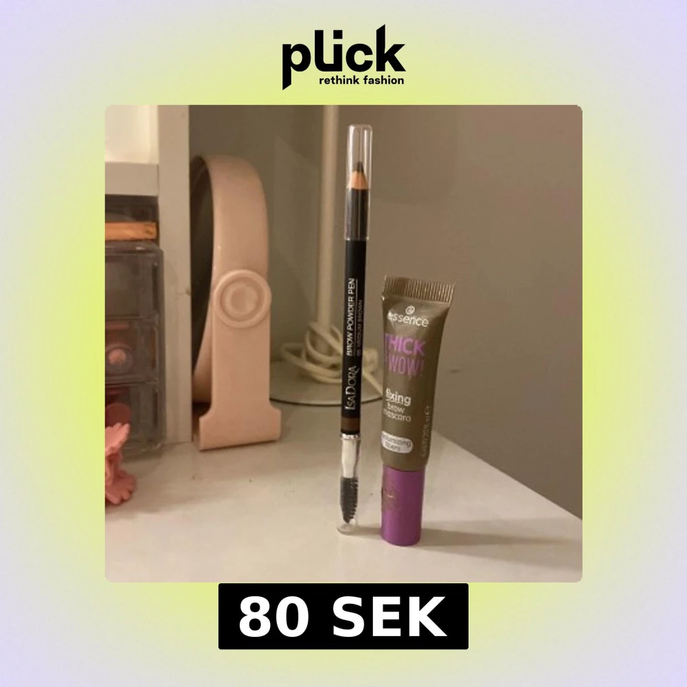 Säljer en Isadora Brow Powder Pen i mörkbrun nyans med borste i ena änden samt en Essence Thick & Wow! fixing brow mascara med volymgivande fibrer. Perfekt för att forma och fylla i brynen med naturligt resultat.