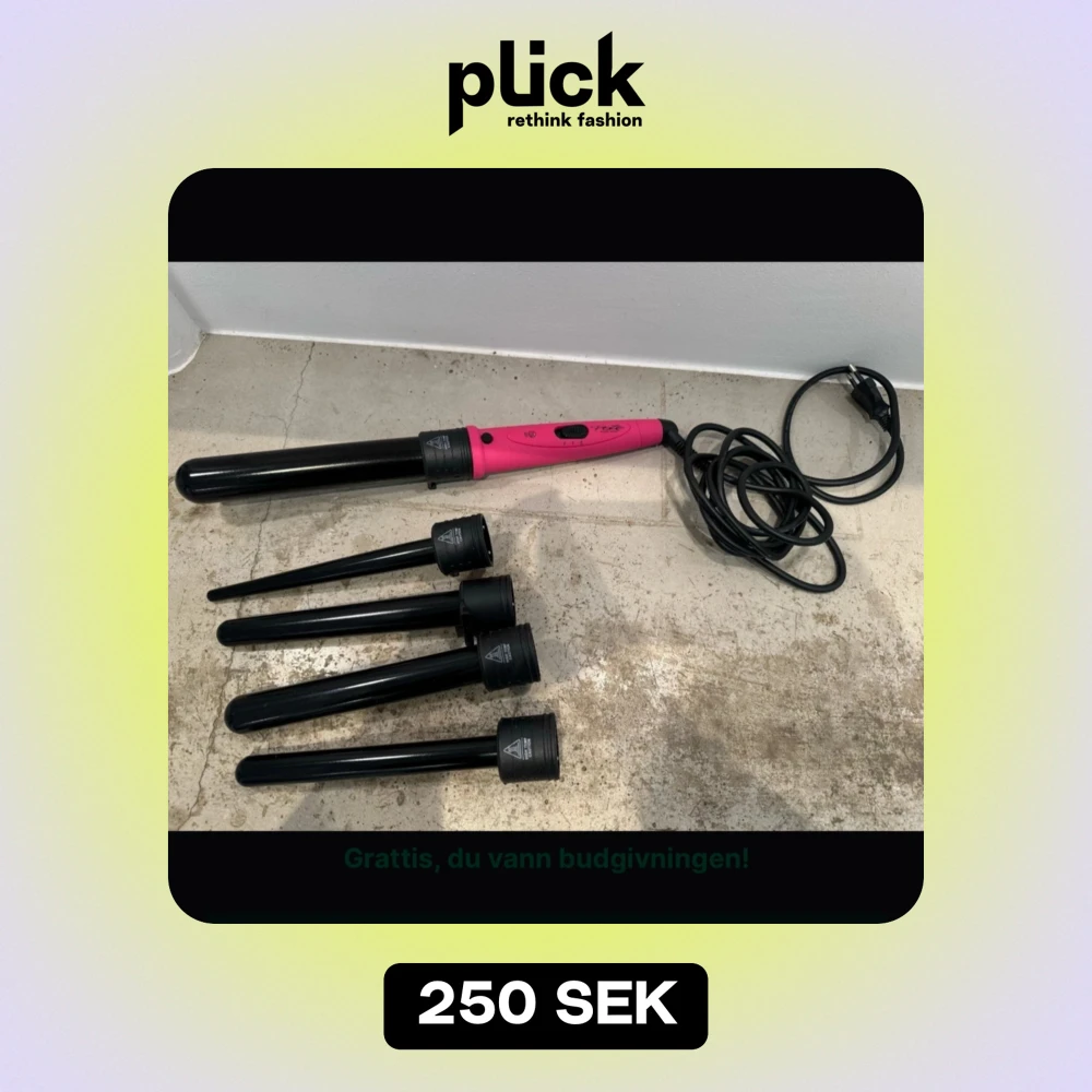 Säljer en locktång med flera utbytbara stavar i olika storlekar. Handtaget är rosa och svart med en sladd för enkel användning. Perfekt för att skapa olika lockar och frisyrer. Använd några gånger men i bra skick.