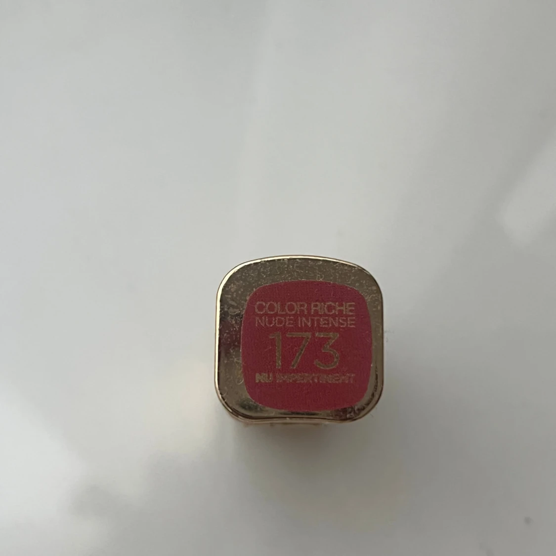 Läppstift från L'Oréal i serien Color Riche Nude Intense, nyans 173. Kommer i en lyxig guldig hylsa och har en mjuk nude-rosa färg med krämig finish. Perfekt för dig som gillar naturliga men ändå markerade läppar. Har använt några gånger bara. Original pris 169kr