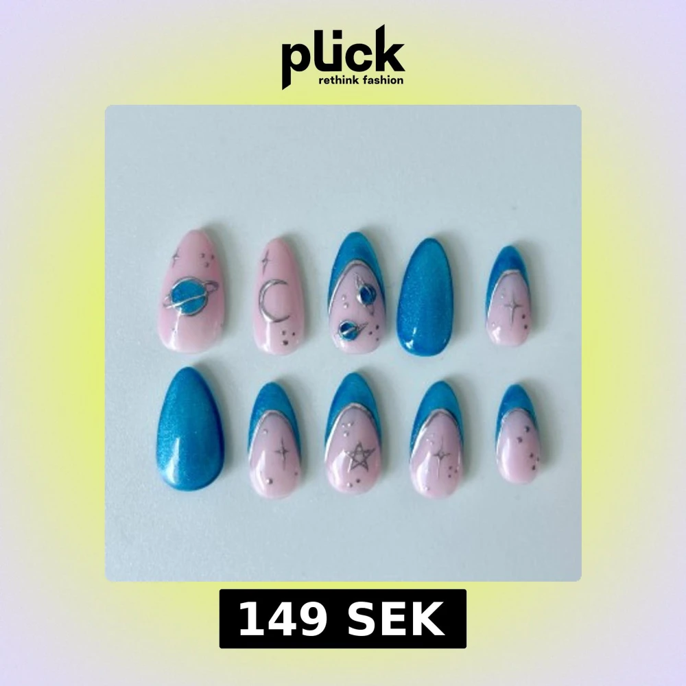 Handmålade Press On naglar gjorda av mig ☀️ Med cateye och galaktiskt tema 🪐