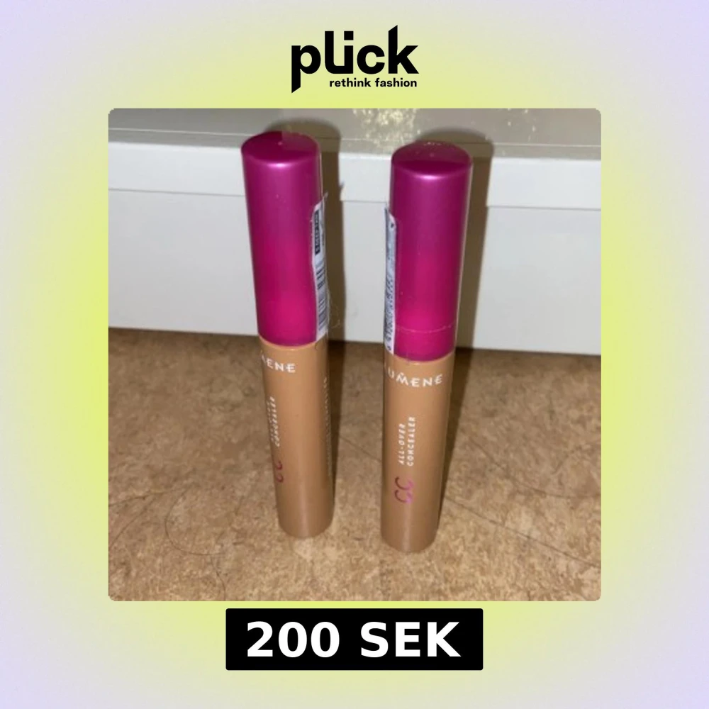 Två stycken Lumene CC All Over Concealer med rosa lock och beige tub. Perfekt för att täcka ojämnheter och mörka ringar. Smidig applikator och lätt formula som smälter in i huden. Passar dig som vill ha en naturlig finish.oöpnade shade 5