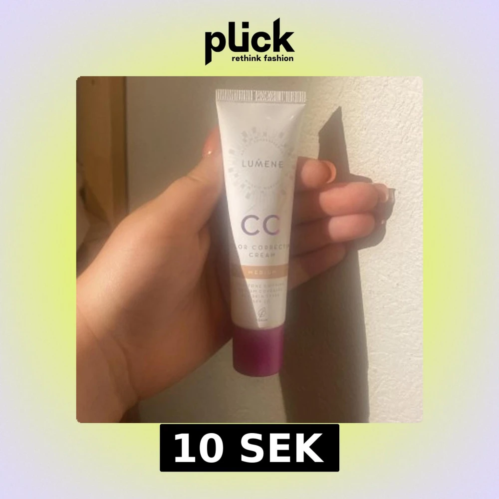 Lumene CC Color Correcting Cream i nyansen Medium. Ger jämn hudton och medium täckning, passar de flesta hudtyper. Kommer i en smidig tub med lila kork och är vegansk. Perfekt för en naturlig bas med SPF 20.