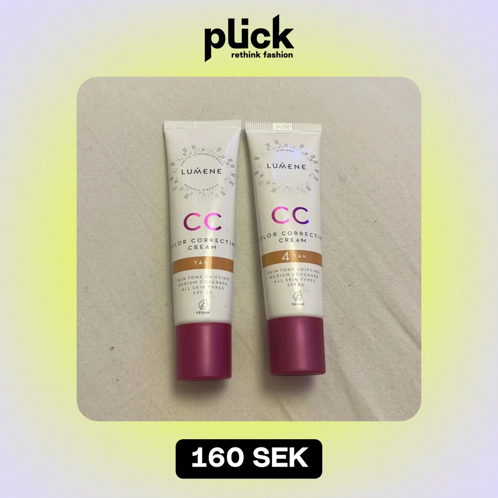 Jag säljer 2 stycken cc creams från Lumene i färgen tan.💕 Dem har medium täckning och ger ett glittrigt resultat.💕 Jag säljer dem för att dem var för mörka på mig. Dem är veganska också.💐 Jag säljer 1 för 100 och båda för 160kr💕aldrig använda💞