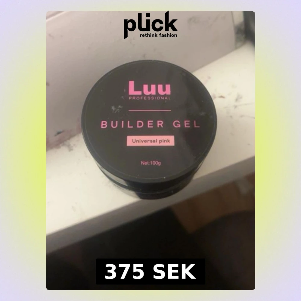 Builder gel i färgen Universal Pink från Luu Professional. Kommer i en svart rund burk med rosa text och innehåller 100g. Använt ungefär 5-10g av den. Säljer eftersom det inte är min typ av färg. Jag paketerar den noggrant så att den inte läcker eller förstörs. Köp gärna!
