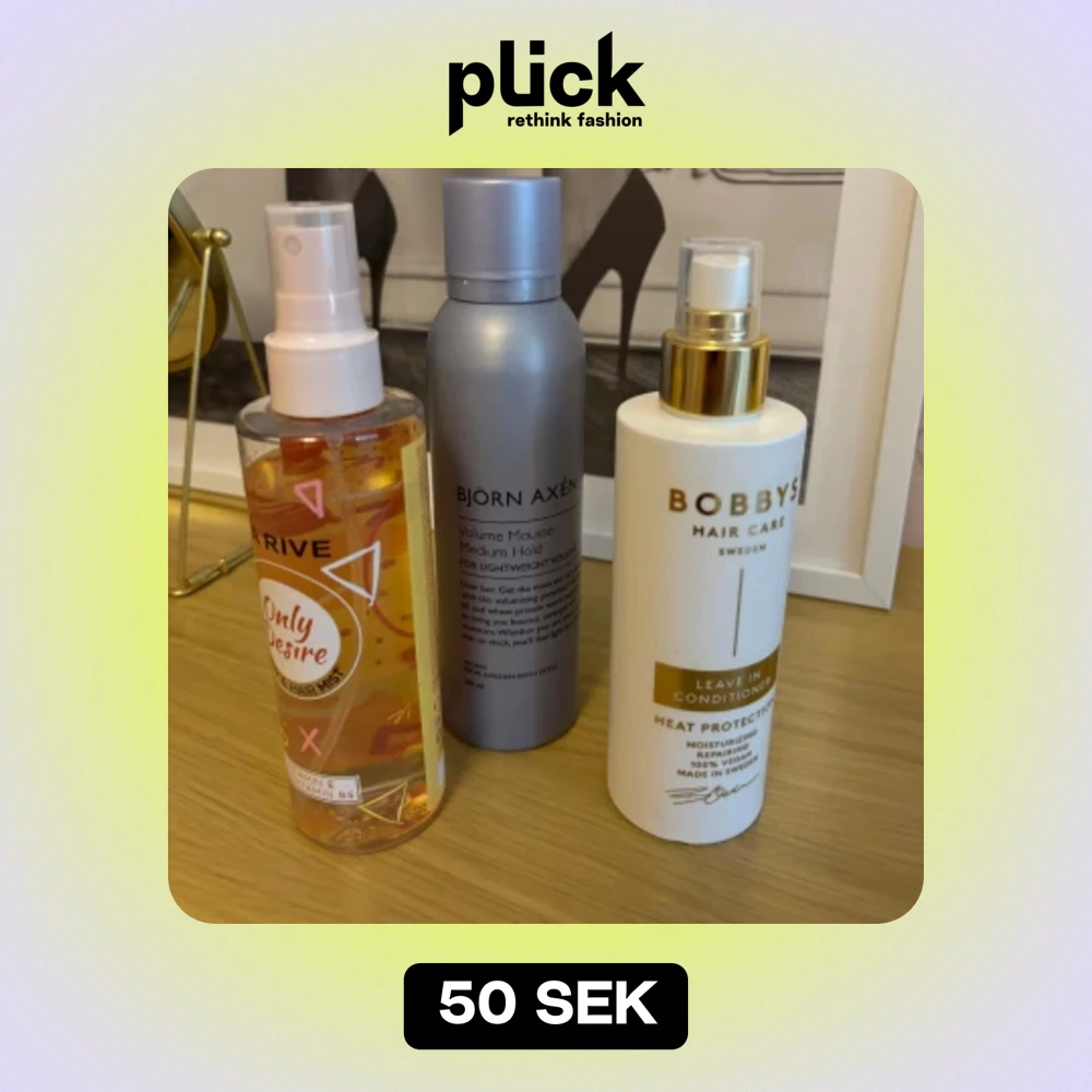 3 produkter som jag säljer alla tillsammans för 50kr. Alla är nästan fulla och kommer inte till användning längre av mig. Balsamspray, värmeskyddspray inkl balsamspray och hårmousse för volym