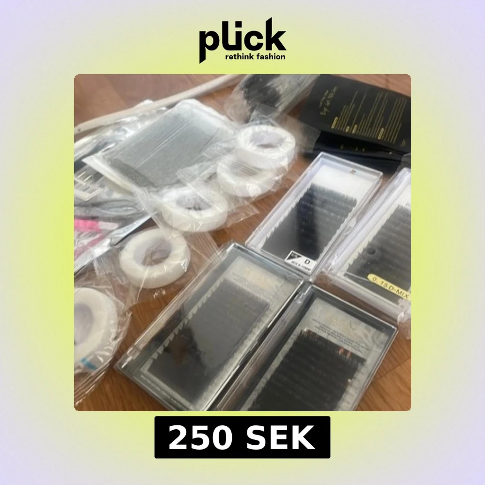Ett komplett kit för ögonfransförlängning med flera askar fransar i olika längder och böj, vita ringar för lim, pincetter och borstar. Perfekt för dig som vill fixa fransarna hemma eller jobbar som fransstylist.