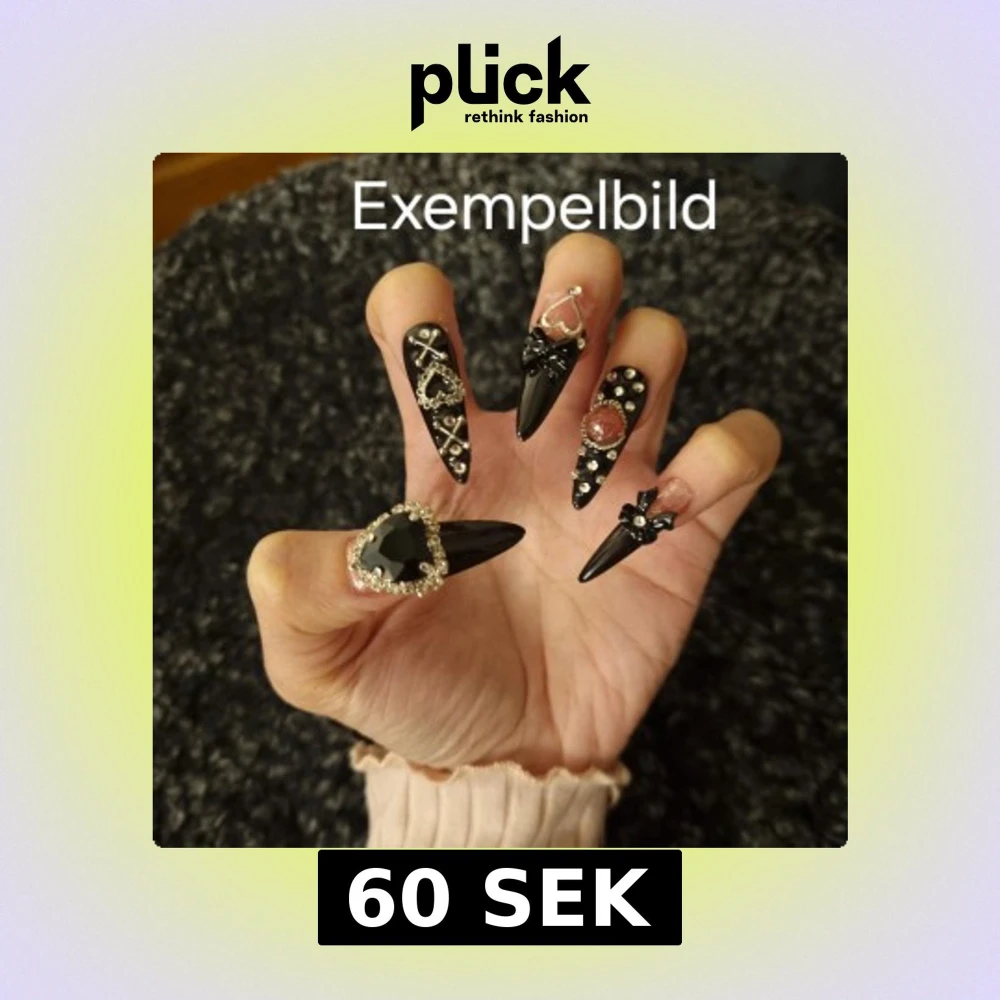 10st långa press on naglar i en gotisk design. Inkluderar nagelfil och applikator. Tillverkad av matt akryl av hög kvalitet, som är stark och hållbar Mått( båda vänster och höger är samma ) Tumme = 1,7 cm bredd längd 3 cm Pekfinger = 1,7 cm bredd längd 3 cm Långfinger = 1,7 cm bredd längd 3 cm Ringfinger = 1,7 cm bredd längd 3 cm Lillfinger = 1,6 cm bredd längd 2,8 cm OBS! Storleken är baserad på manuell mätning och kan variera med 1–2 cm.