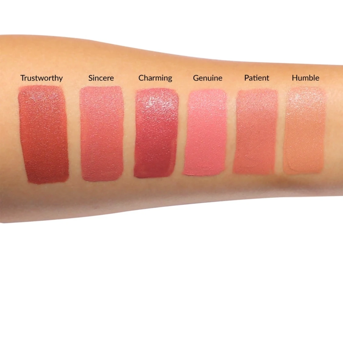 Bara testat . I nyttskick. Säljer ett kit med 5 mini flytande läppstift från theBalm i nude-nyanser. Färgerna är Trustworthy, Sincere, , Genuine, Patient och Humble – allt från varm brunröd till ljus nude.