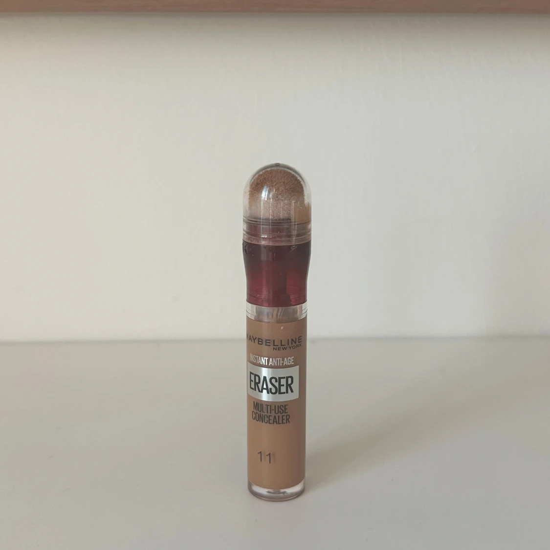 Maybelline Instant Anti-Age Eraser Concealer i nyansen 11. Kommer i en smidig tub med inbyggd svampapplikator och rödbrun kork. Perfekt för att täcka mörka ringar och ojämnheter. Innehåller 6,8 ml och är lätt att applicera. Den är enbart testad en gång på handryggen