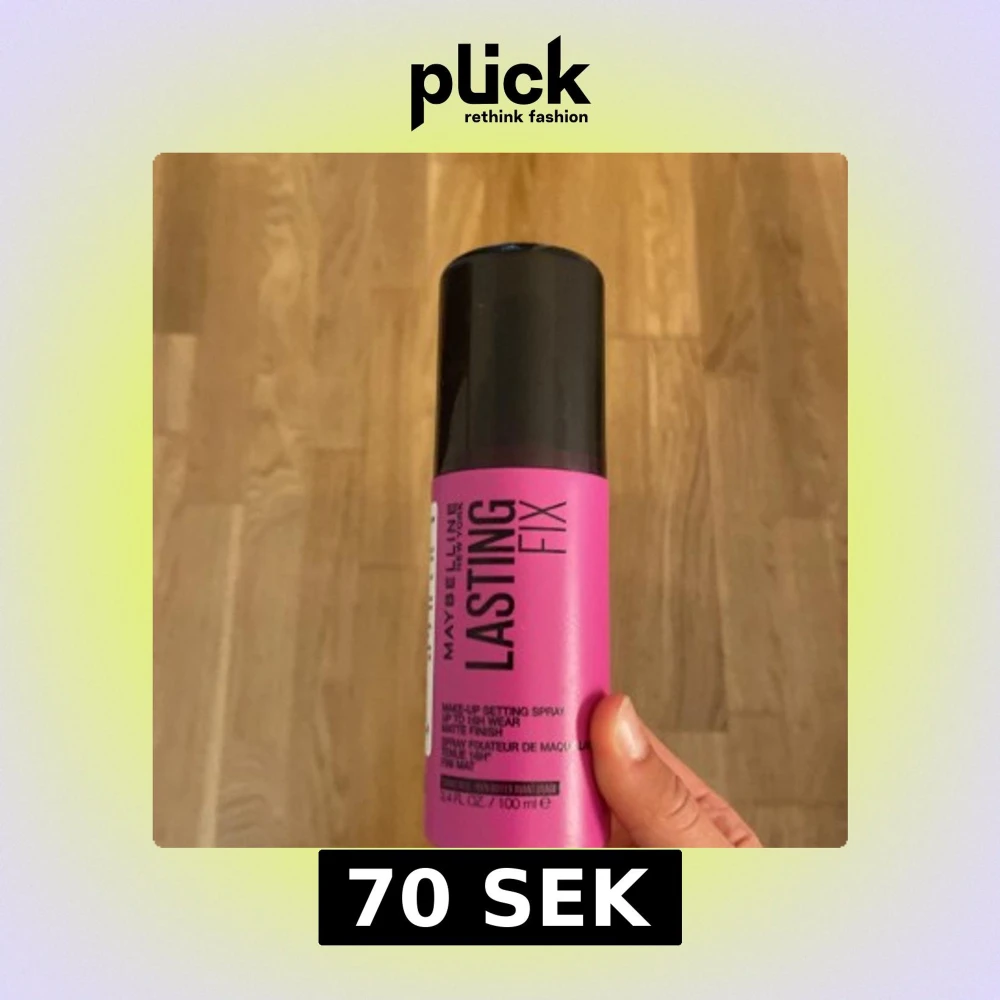 Säljer en Maybelline Lasting Fix setting spray i en rosa flaska med svart lock. Sprayen ger en matt finish och hjälper sminket att hålla längre. Perfekt för att fixera din makeup hela dagen. Innehåller 100 ml.