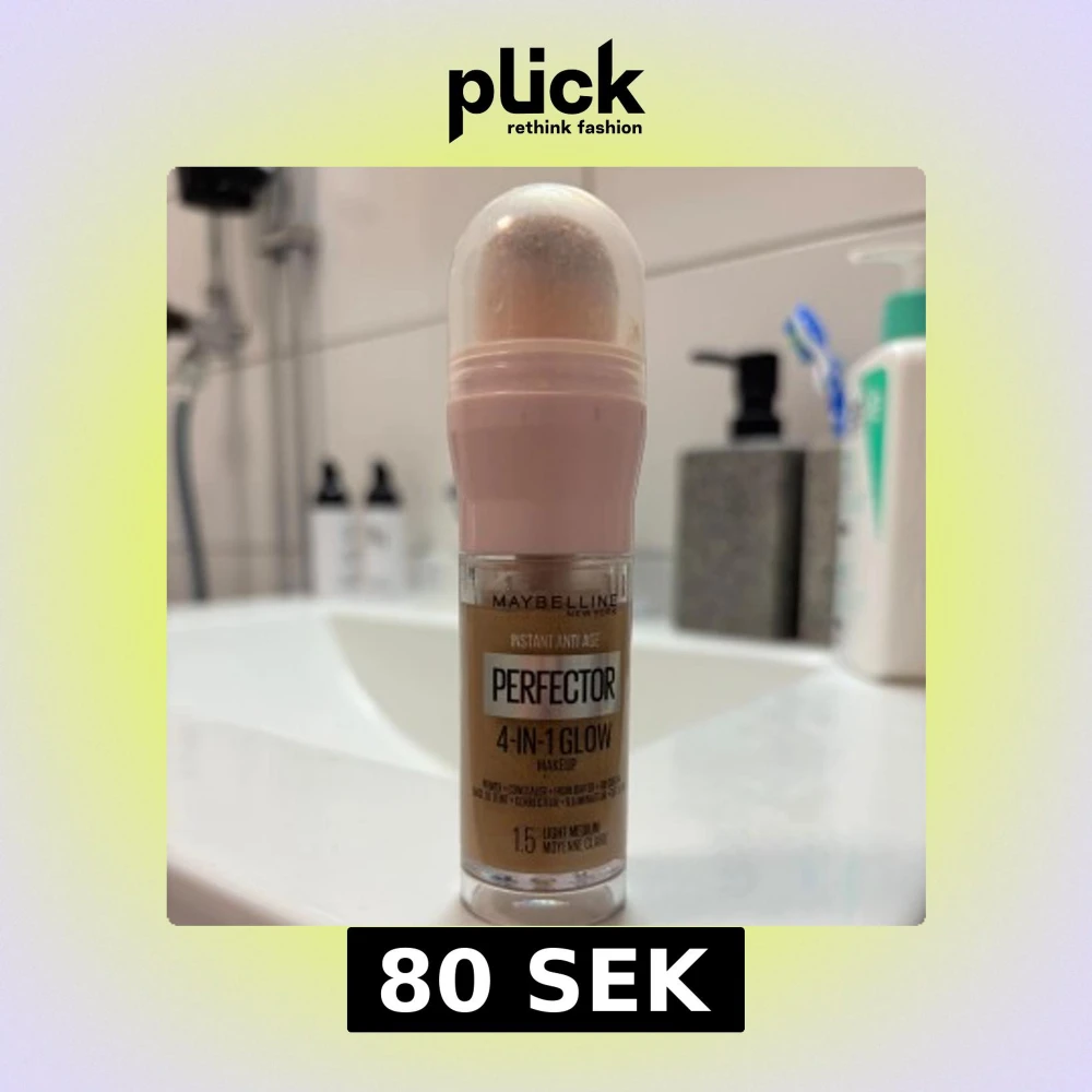 Maybelline Instant Anti Age Perfector 4-in-1 Glow i nyansen 1.5 Light Medium. Smidig tub med inbyggd svampapplikator. Fungerar som primer, concealer, highlighter och foundation. Ger en naturlig glow och jämnar ut hudtonen. Perfekt för en snabb och fräsch bas.