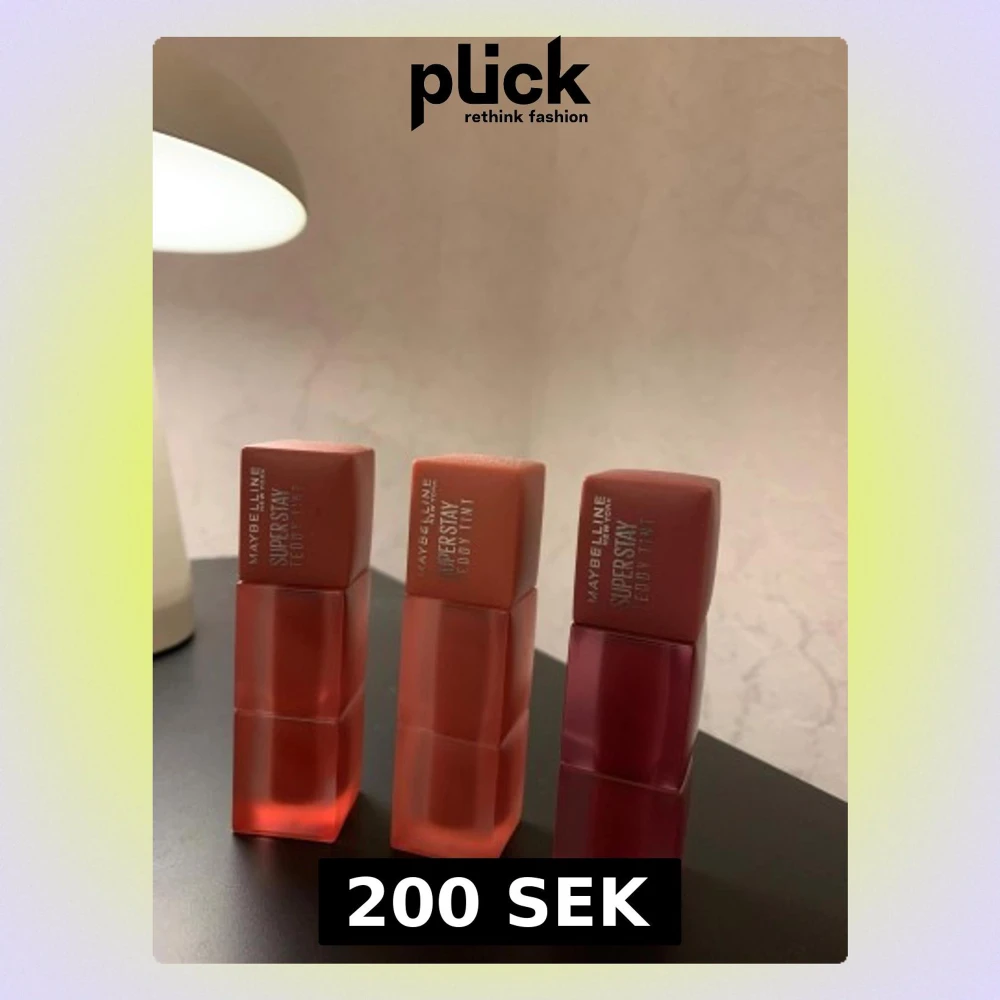 Alla 3 är endast testade fåtal gånger. Iprincip som nya! Nypris för 1 var 170kr. Tre Maybelline SuperStay Teddy Tint läppfärger i nyanserna 15 Skinnydip (ljus korall), 10 Current Mood (varm nude) och 55 Kneehigh (djup bärig röd). Snygga fyrkantiga förpackningar i matt plast med färgmatchad design. Perfekt för dig som gillar pigmenterade läppar.