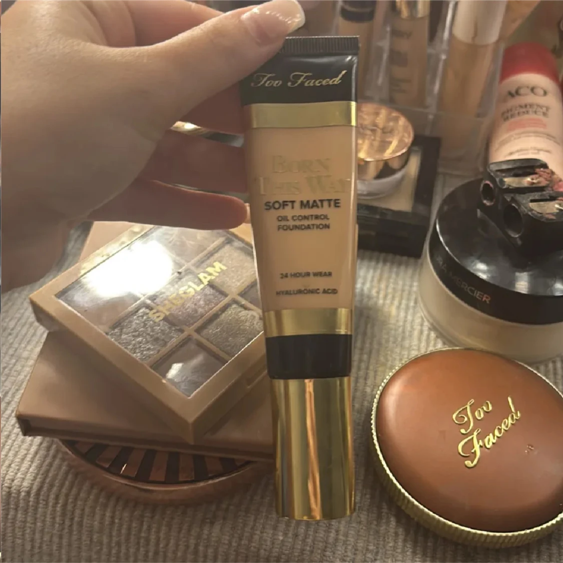 Foundation från Too Faced i serien Born This Way Soft Matte. Ger en matt finish och kontrollerar olja, perfekt för dig som vill ha en jämn och hållbar bas. Innehåller hyaluronsyra och kommer i en snygg tub med guldiga detaljer. Som nytt Originalförpackning medföljer 🧾 Kvitto finns om du vill se det 💬 Fråga gärna om fler bilder eller färgkod!