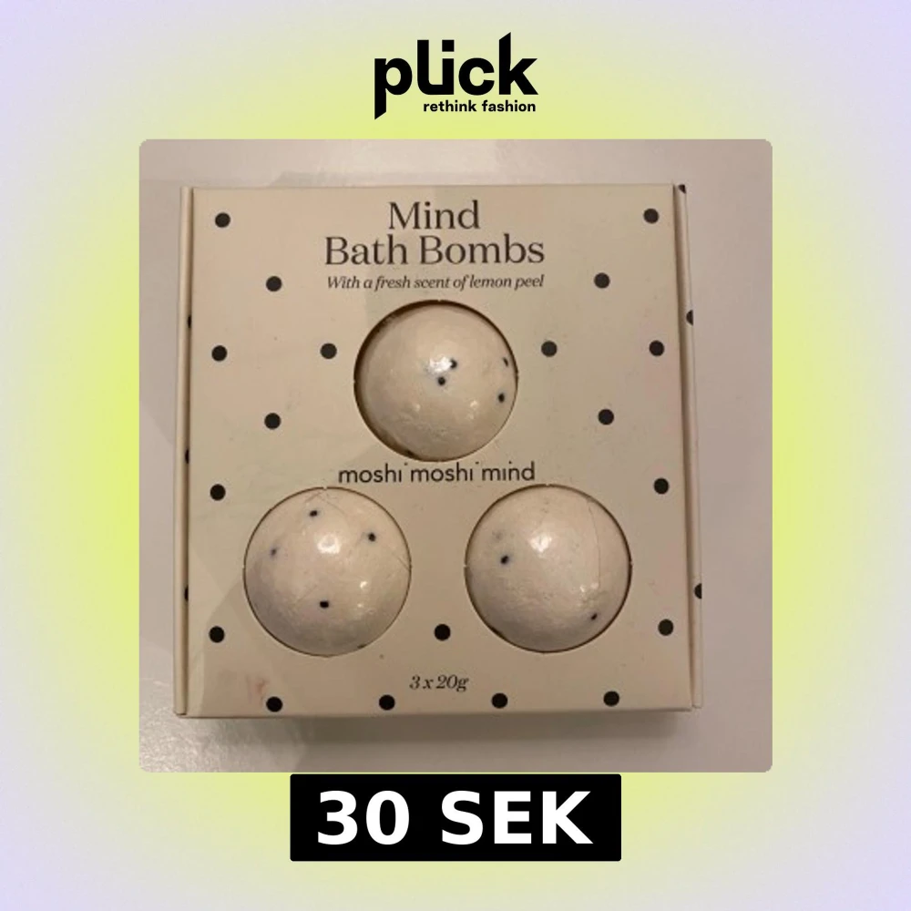 Säljer ett set med tre naturliga och veganska badbomber från moshi moshi mind. De har en fräsch doft av citronskal och är perfekta för att skapa en spa-känsla hemma. Varje bomb väger 20g och är utvecklad för att göra huden mjuk och återfuktad.