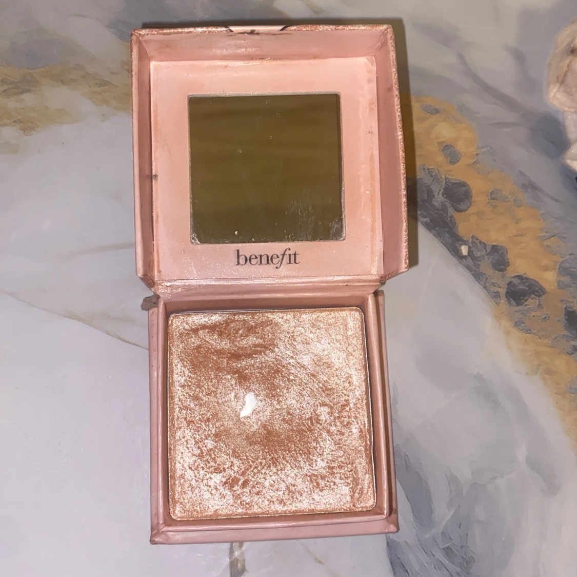 Supersnygg highlighter från Benefit i nyansen Cookie. Kommer i en söt rosa ask med spegel i locket. Ger en intensiv, champagnefärgad glow med skimrande finish. Perfekt för att framhäva kindben, näsrygg och amorbåge.