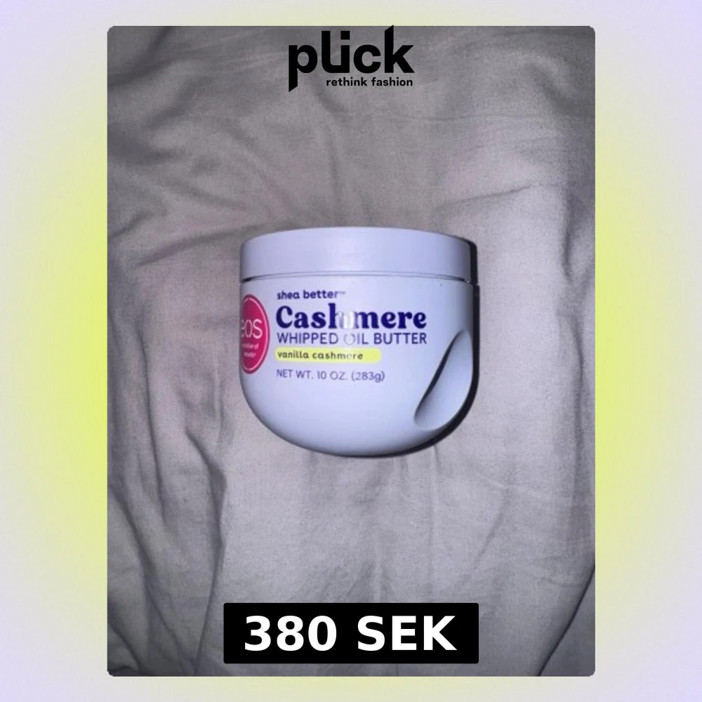 Lyxig body butter från EOS i doften Vanilla Cashmere. Kommer i en vit rund plastburk med lila och gula detaljer. Innehåller sheasmör och oljor för extra återfuktning och mjuk hud. Perfekt för dig som vill ha en krämig och väldoftande hudvård.