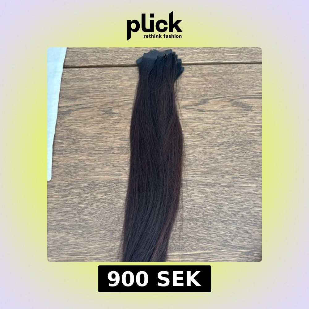 Långt, rakt löshår i en djup mörkbrun nyans med tejpfästen upptill. Perfekt för att ge extra längd och volym till håret. Passar dig som vill ha ett naturligt och fylligt resultat. Fästena är 3 cm. 46 slingor hår motsvarar ungefär 4 paket extensions. Håret är äkta hår och är ej färgbehandlat vilket gör kvaliten bättre, vid frågor om färg osv skriv (är utbildad frisör) så hjälper gärna då jag har fler färger hemma!