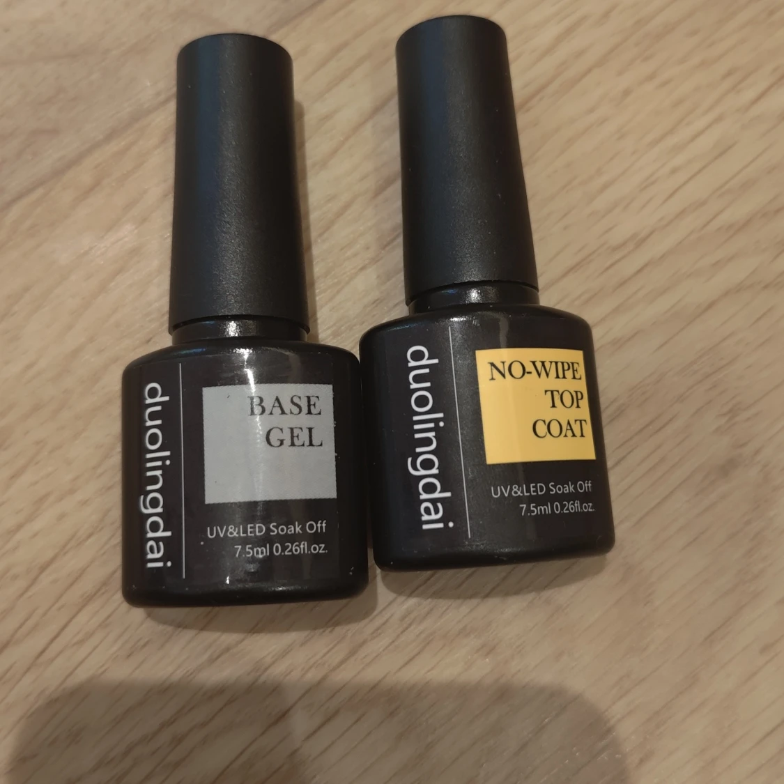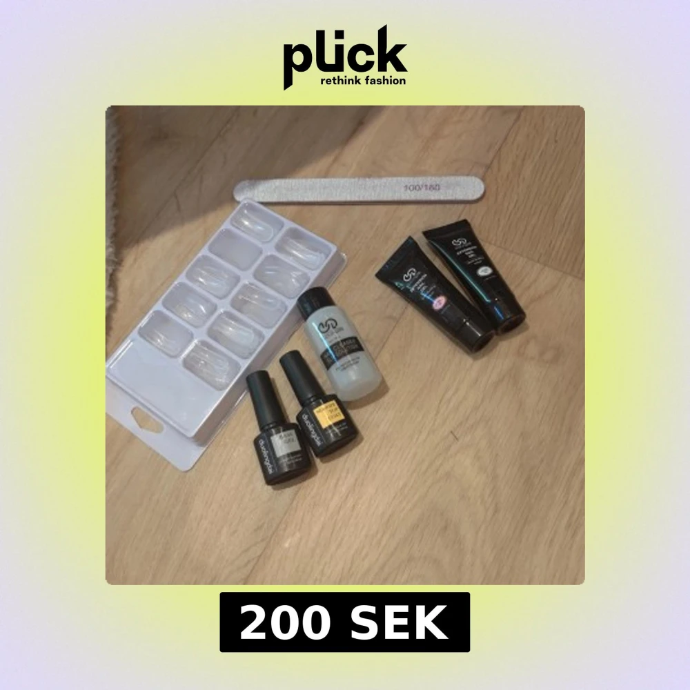Komplett nagelkit med base gel, top coat, slip solution, nagelfil och lösnaglar. Perfekt för att bygga och forma egna gelnaglar hemma. Allt du behöver för snygga och hållbara naglar i en smidig förpackning. Ena gelét genomskinligt och ena i rosa. Jag använt det rosa på en nagel så jag tyckte det var svårt och jag använde inte det något mer.