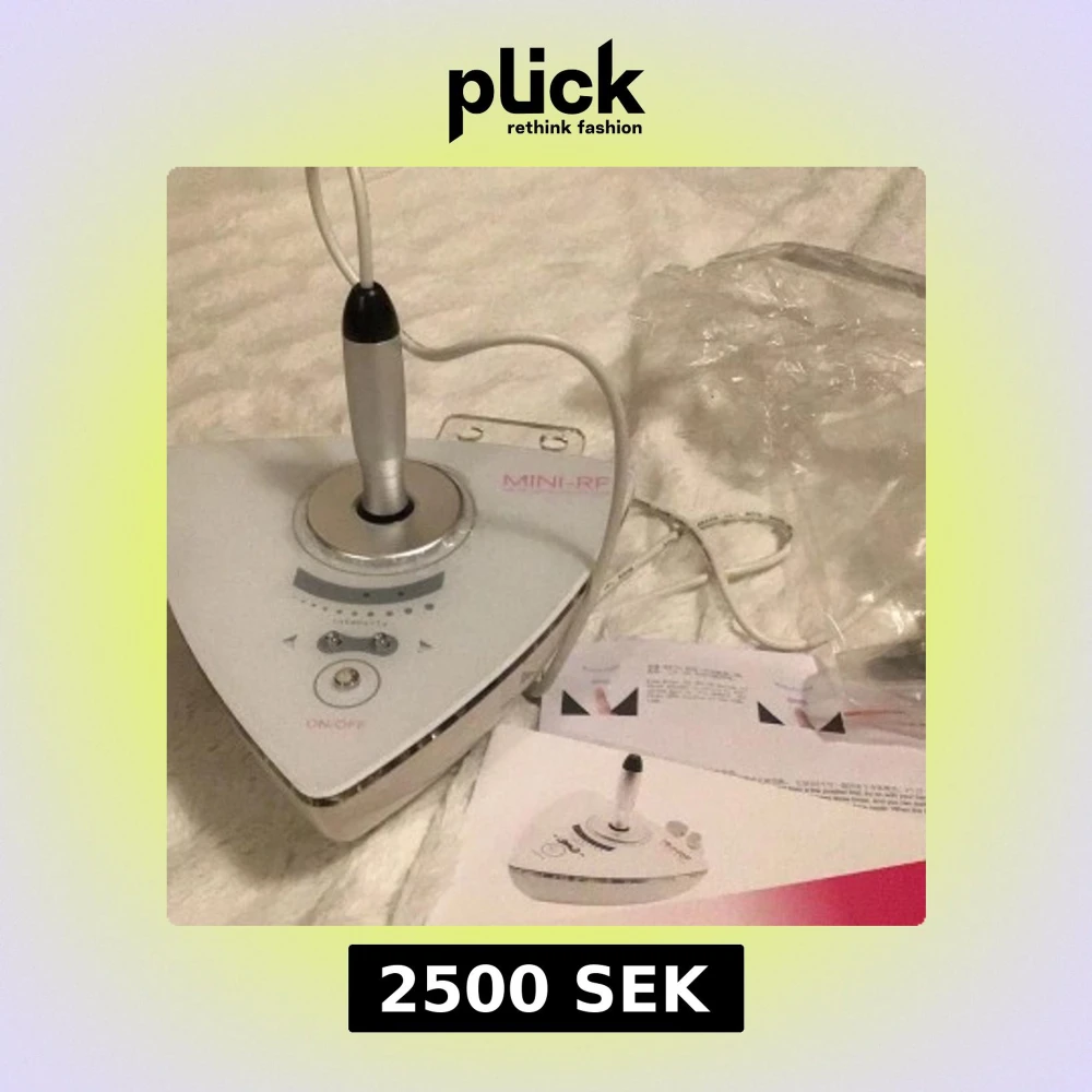 Mini-RF enhet för hudföryngring och rynkborttagning. Används för att strama åt huden och reducera rynkor, speciellt runt ögonen. Inkluderar användarmanual med instruktioner för olika massage- och behandlingsmetoder.