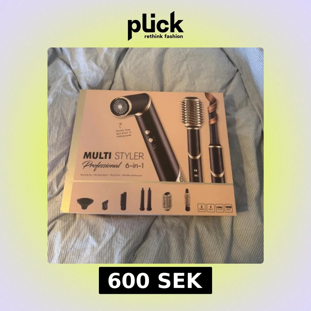 Säljer den populära Multi Styler 6-in-1 hårstyler fråm rusta. Med flera utbytbara tillbehör för att föna, locka och borsta håret. Setet innehåller rundborste, diffuser, stylingmunstycke och locktillbehör. Perfekt för att skapa olika frisyrer hemma. Obs. Saknar munstycket som är till för att ”fönplatta” håret då jag fick den så redan när hag köpte den och men kunde inte köpa till ett enskilt munstycke. Testad 2 gånger, men ren och fin och i nyskick.🤍🤍
