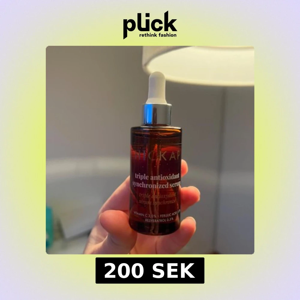 Säljer ett serum med trippel antioxidant-effekt, innehållande vitamin C, ferulinsyra och resveratrol. Kommer i en brun glasflaska med pipett för enkel applicering. Perfekt för att ge huden en boost av antioxidanter. Den är helt ny och oanvänd