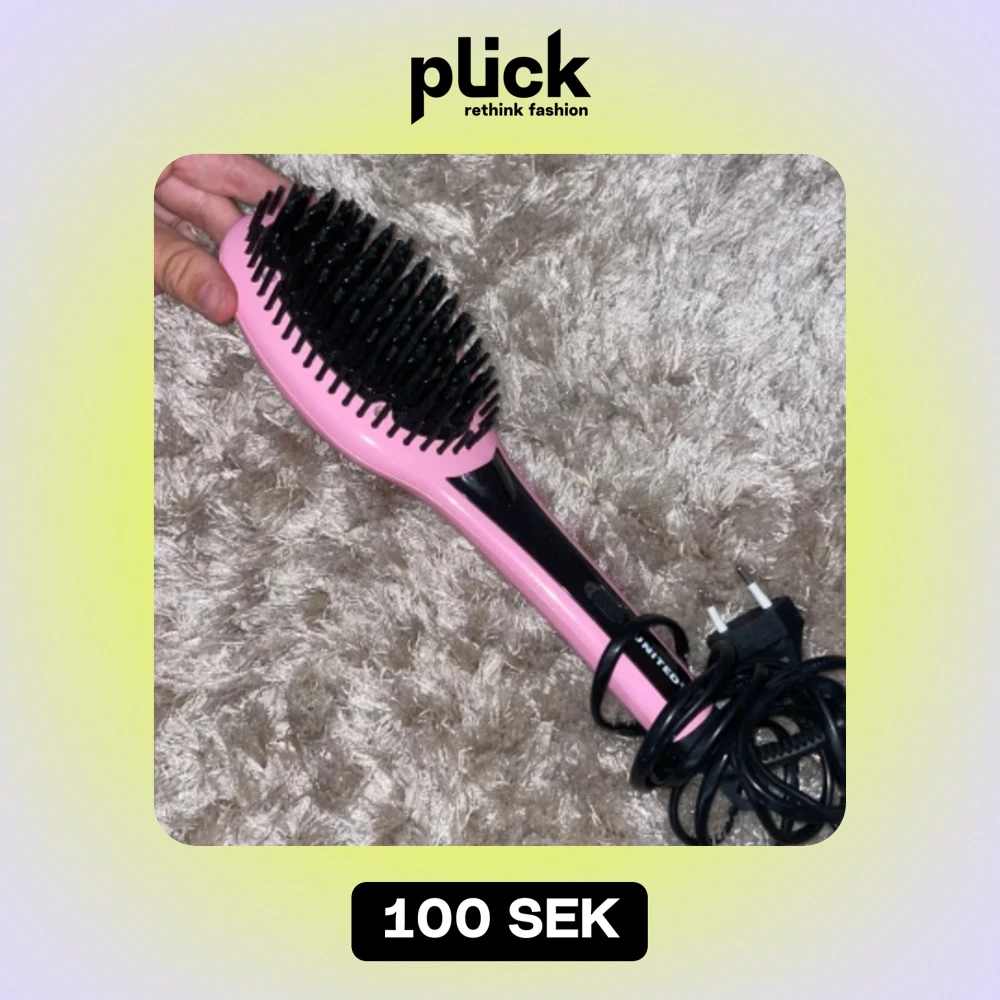 Säljer en rosa elektrisk värme hårborste från United, modell HSB1721. Den har en svart borstdel och en sladd för strömförsörjning. Perfekt för att snabbt och enkelt platta håret. Borsten är i gott skick och fungerar utmärkt. Ansluts till 220-240V och har en effekt på 46W.