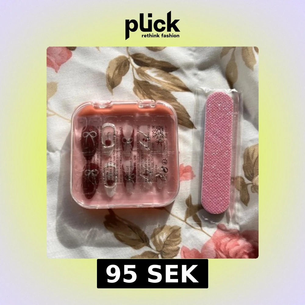 Sött nagelkit med lösnaglar. Kommer i en praktisk rosa förvaringsask. Inkluderar en rosa nagelfil för enkel applicering och formning . Perfekt för speciella tillfällen.