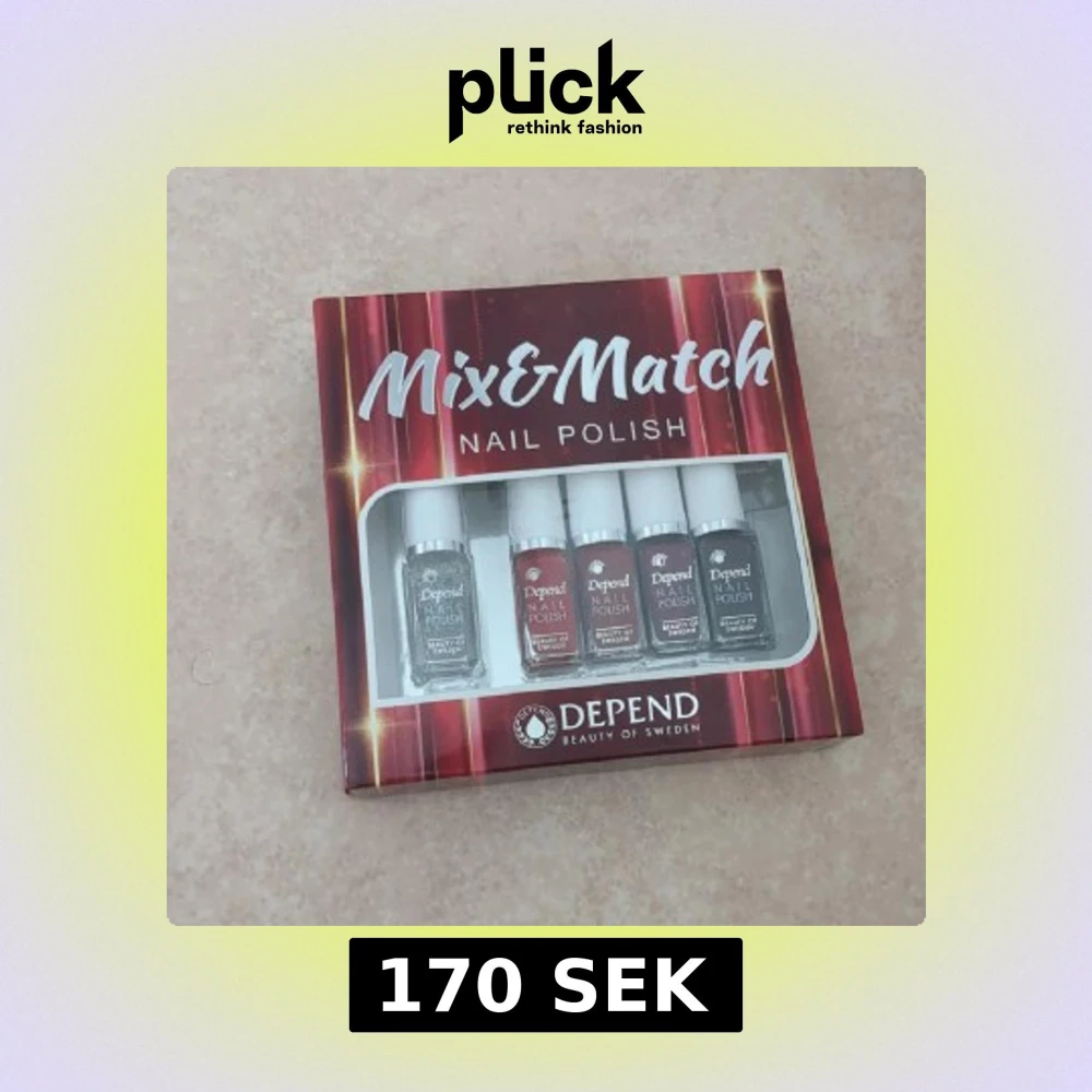 Snyggt set med fem nagellack från Depend i olika färger: silverglittrigt, rött, vinrött, mörkrött och grått. Perfekt för att mixa och matcha olika looks. Kommer i originalförpackning med genomskinligt fönster.