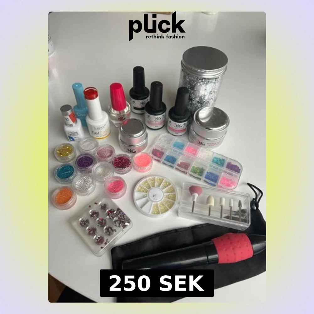 Tillbehör för gelenaglar, gele, buildergel, nagellack, gelelack, glitter, stenar, nagelfil elektrisk. De är lite använt men de är mycket kvar i de flesta, blandade märken som nagelgiganten