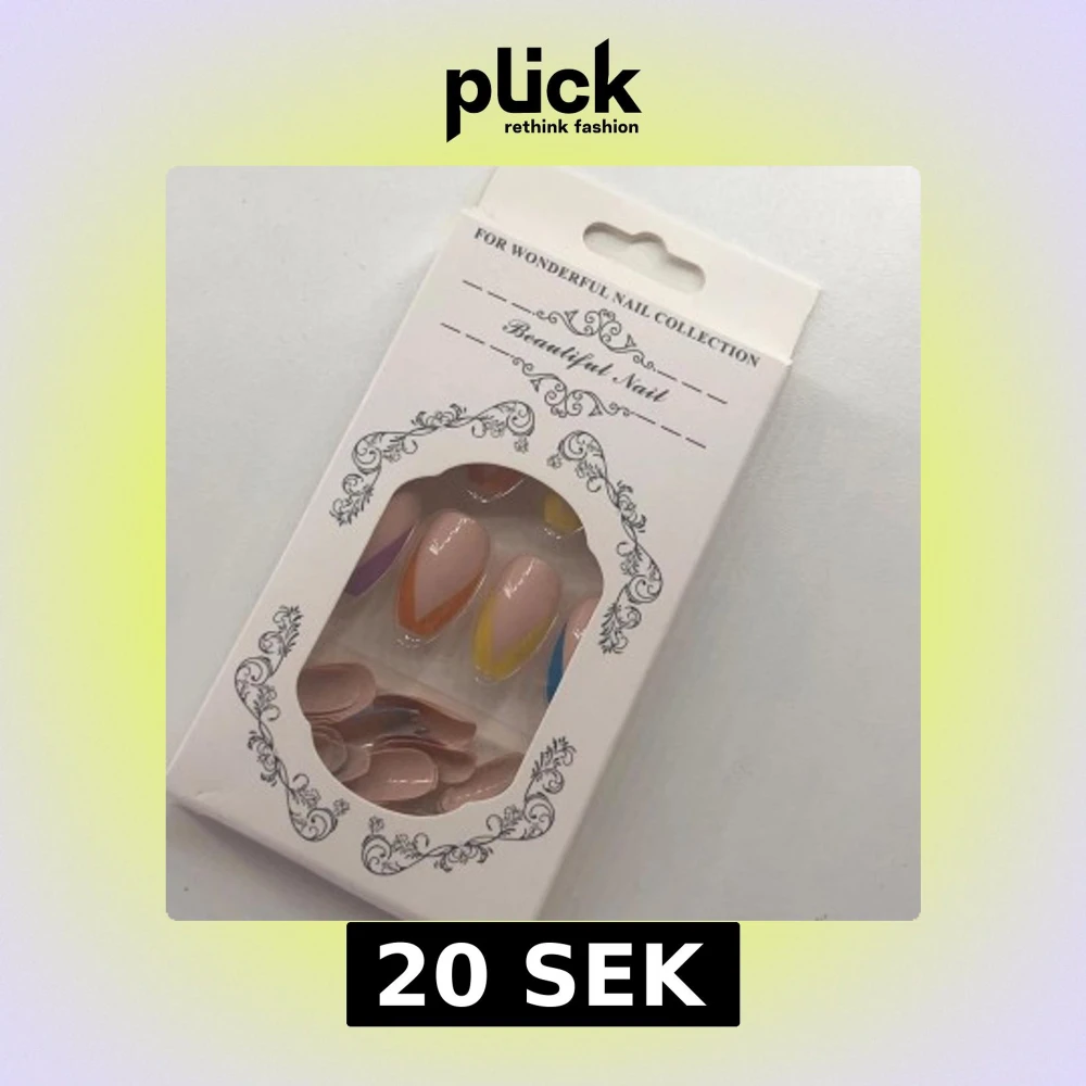 ❗️Köp inte via ”köp nu” endast Swish ❗️Snygga lösnaglar i olika färger som lila, orange, gul och blå. Perfekt för att snabbt få en trendig look. Naglarna har en modern design med en spetsig form och är enkla att applicera.