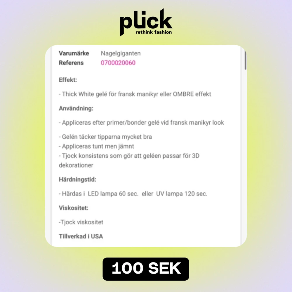 Vit gele från nagelgiganten, konstisense är väldig tjock så prefekt om man är nybörjare. Köpt för 199kr säljs för 100kr. Eller köp båda gele från min sida för 150 kr!