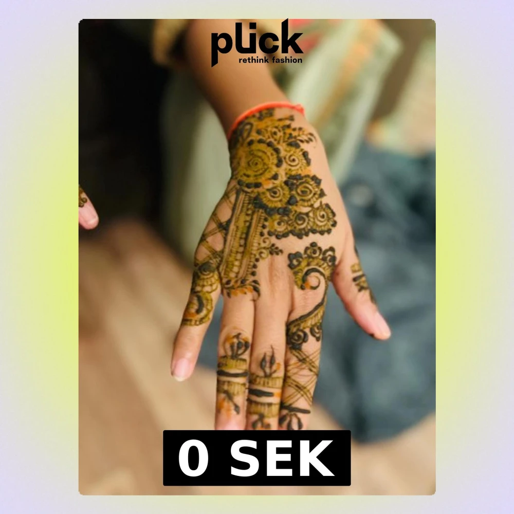 Säljer henna mehndi för att skapa detaljerade och konstnärliga mönster på händerna. Färgen är djup brungrön och ger ett traditionellt, exotiskt utseende med blommor, cirklar och linjer. Perfekt för att göra unika och personliga designs på huden. Materialet är naturlig henna.