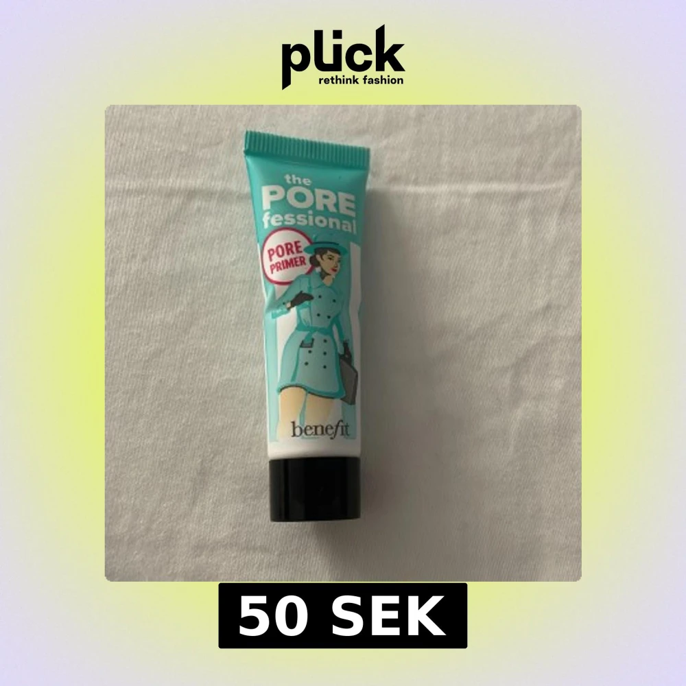 The POREfessional Primer från Benefit i en turkos tub med svart lock. Denna primer minimerar synliga porer och ger en silkeslen finish. Tuben rymmer 7,5 ml och har en cool retrodesign med illustration av en kvinna i trenchcoat.