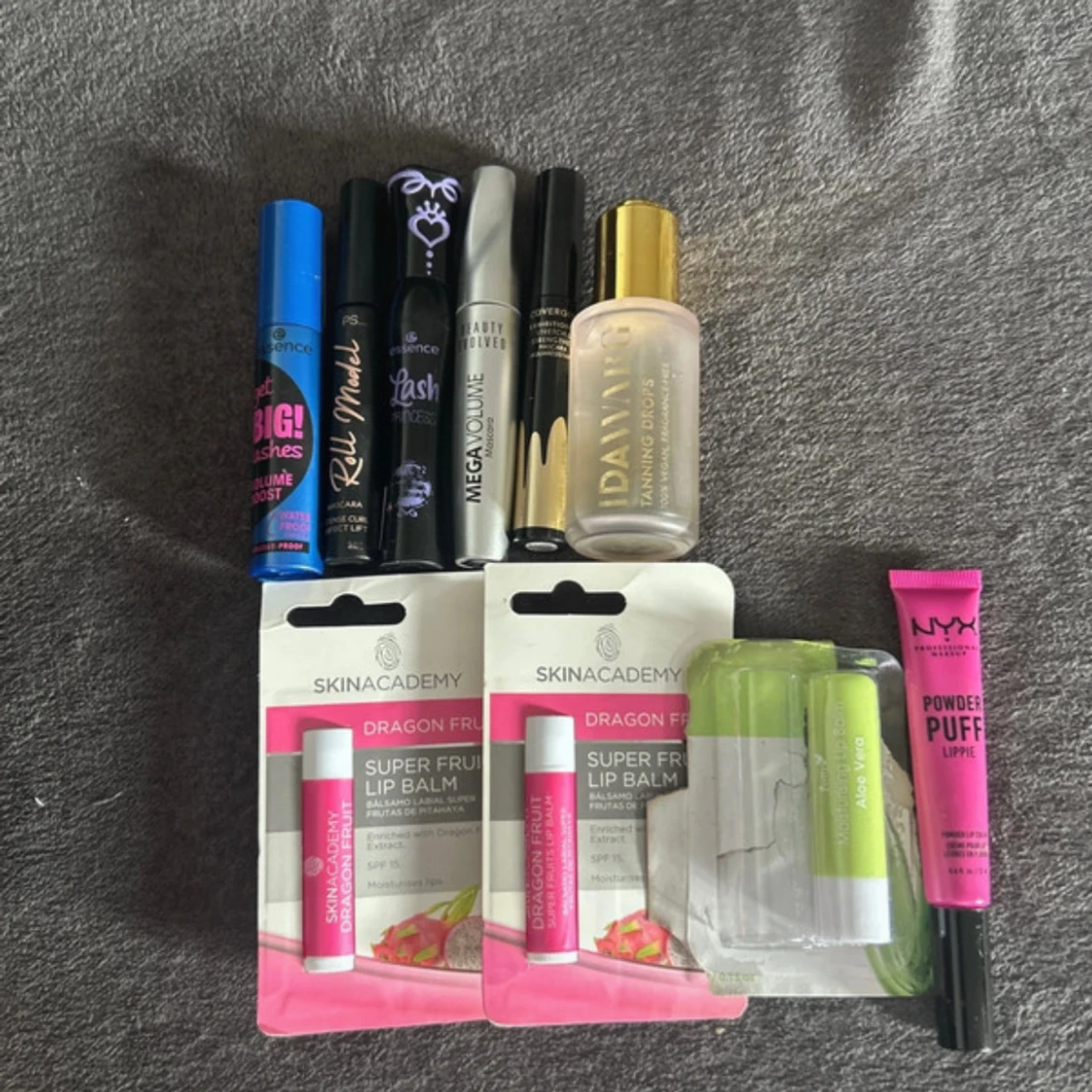 Alla produkter är nya, förutom Den rosa från lyx har använt den var två gånger Och mascarorna det finns de som är nya och de är som bara provade och Ida var har jag använt som man kan se på bilden man kan köpa separat om man vill