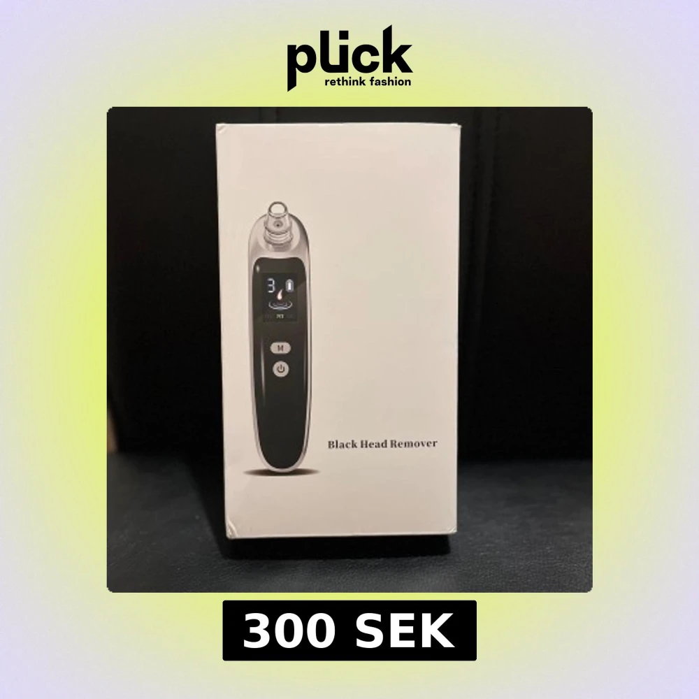 Säljer en elektrisk blackhead remover med flera utbytbara munstycken. Den har en digital display och laddas via USB. Perfekt för att rengöra porer och ta bort pormaskar effektivt. Kompakt design i svart och silver.