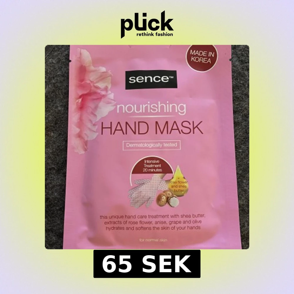 Nourishing hand mask från Sence, tillverkad i Korea. Denna handmask är dermatologiskt testad och erbjuder en intensiv behandling på 20 minuter. Innehåller sheasmör, extrakt av rosblomma, anis, druva och oliv för att återfukta och mjukgöra händerna. Perfekt för normal hud.