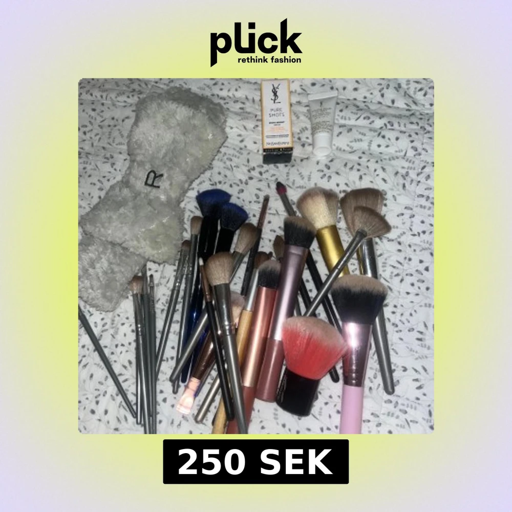 Säljer ett stort kit med en headband och sminkborstar i olika former och färger. Vissa borstar ALDRIG ANVÄNDA! Inkluderar även YSL Pure Shots serum och en YSL hudvårdskräm, båda inte så mycket ANVÄNDA!! Perfekt för dig som älskar smink och vill ha många val! Säljs för SÅÅÅ bra pris!