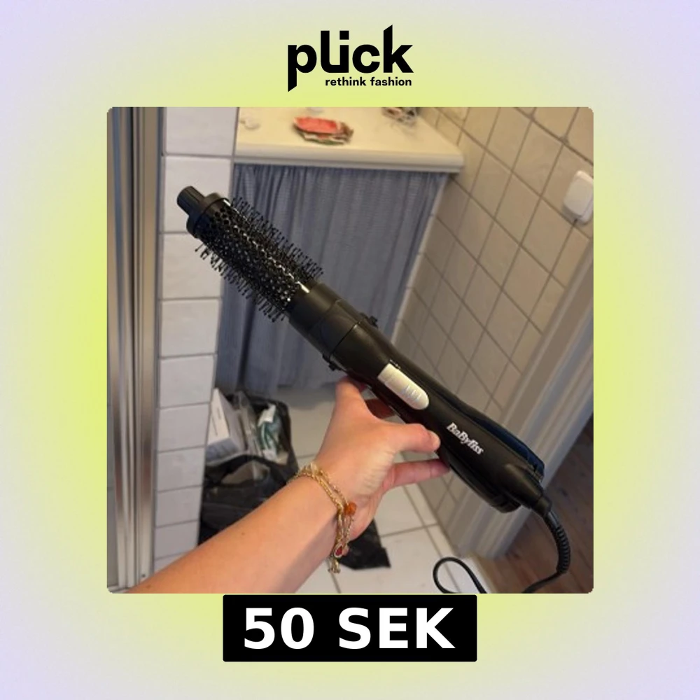 Säljer en svart BaByliss varmluftsborste med två utbytbara borsthuvuden i olika storlekar. Perfekt för att styla och forma håret med volym och glans. Borstarna har täta svarta borst och borsten är enkel att använda med smidig knapp på handtaget.
